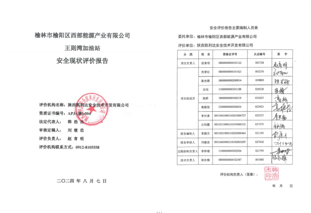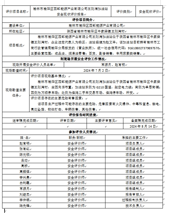 KLDAP[2024]-2.19 榆林市榆陽區(qū)西部能源產業(yè)有限公司王則灣加油站安全現(xiàn)狀評價報告