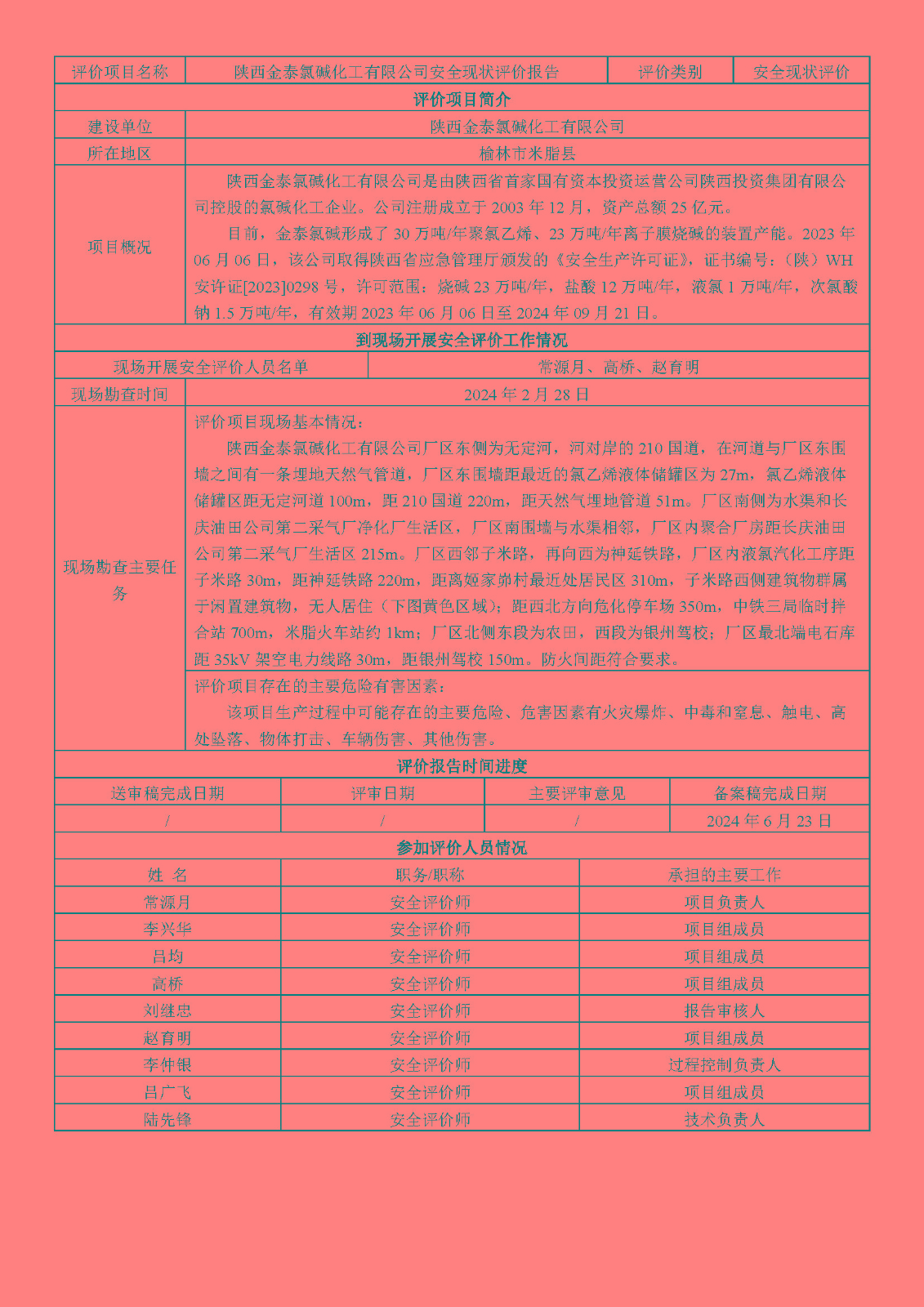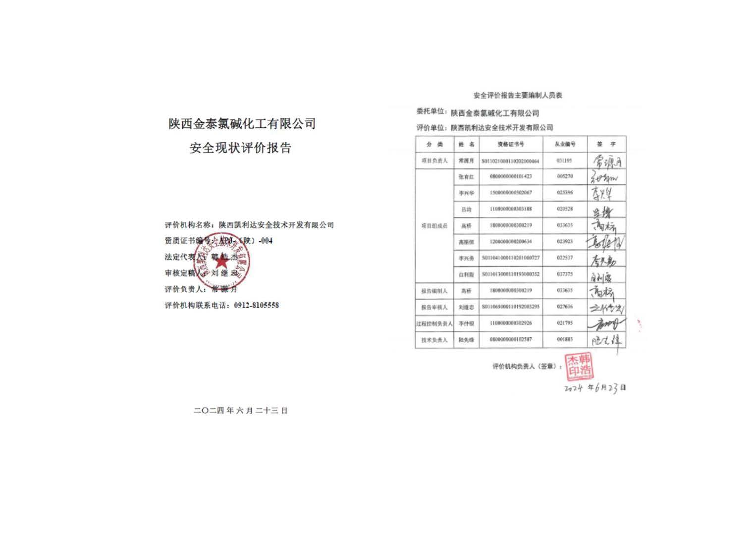 KLDAP[2024]-2.7陜西金泰氯堿化工有限公司安全現狀評價