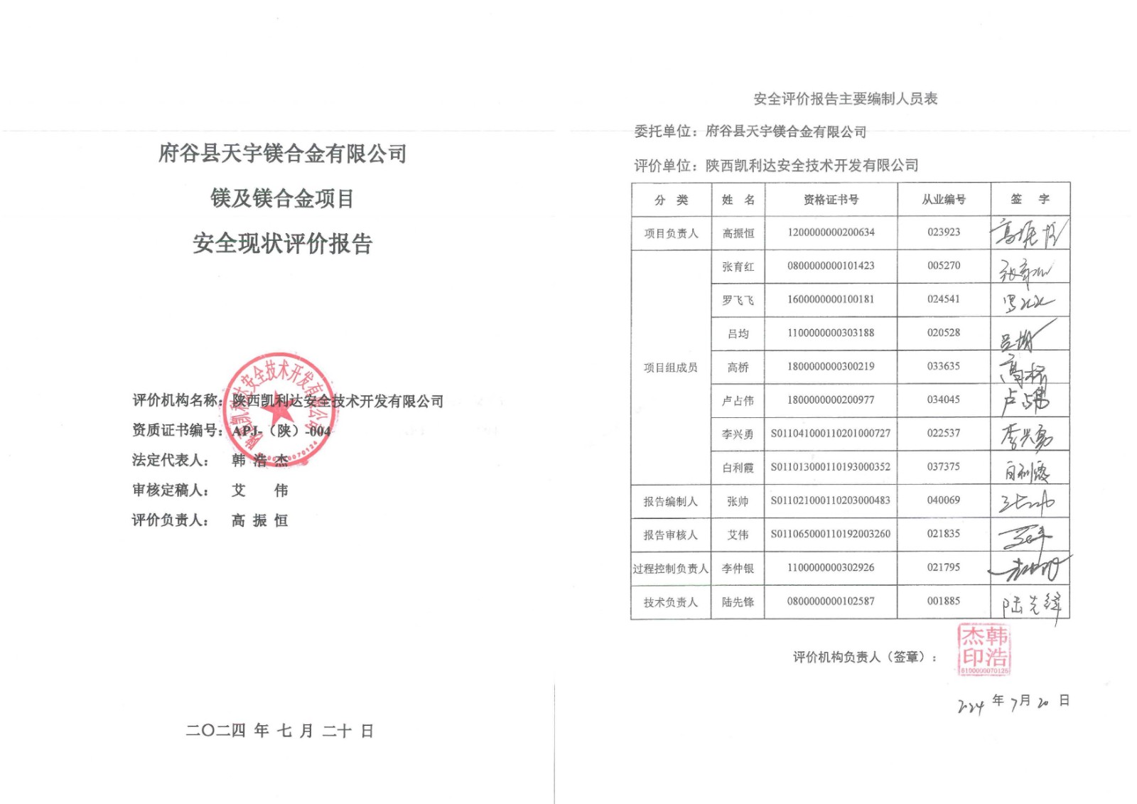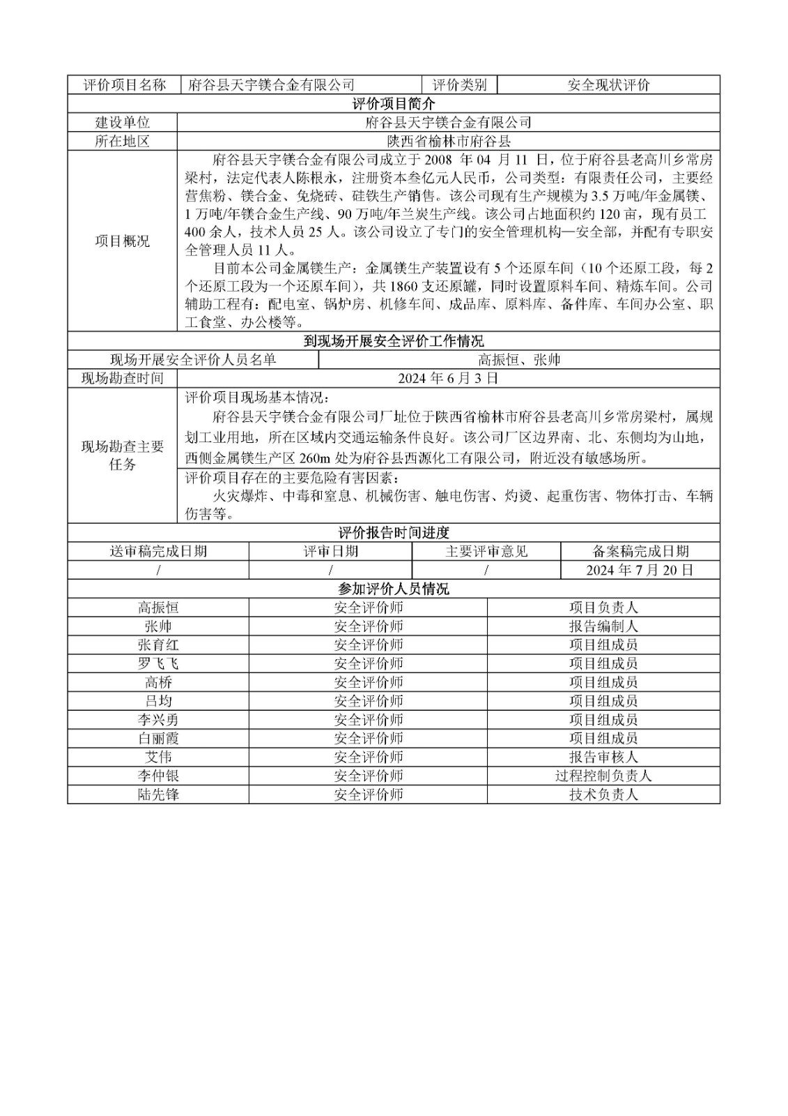 KLDAP[2024]-3.9府谷縣天宇鎂合金有限公司安全現(xiàn)狀評(píng)價(jià)