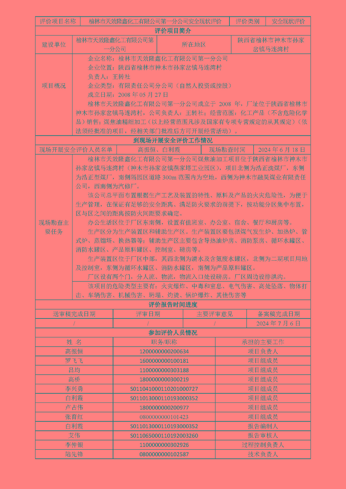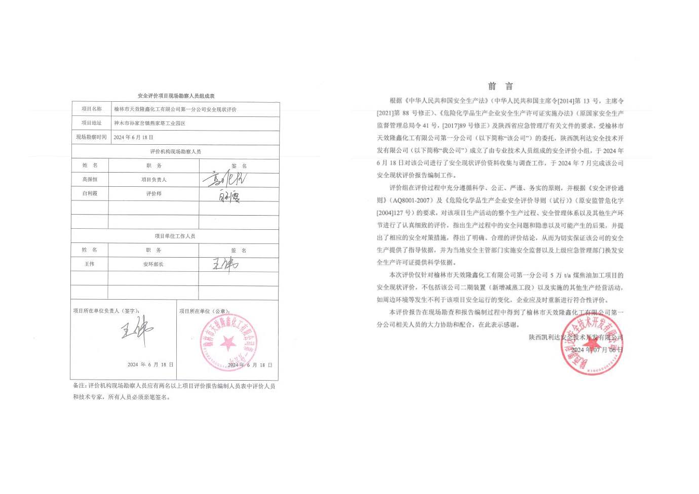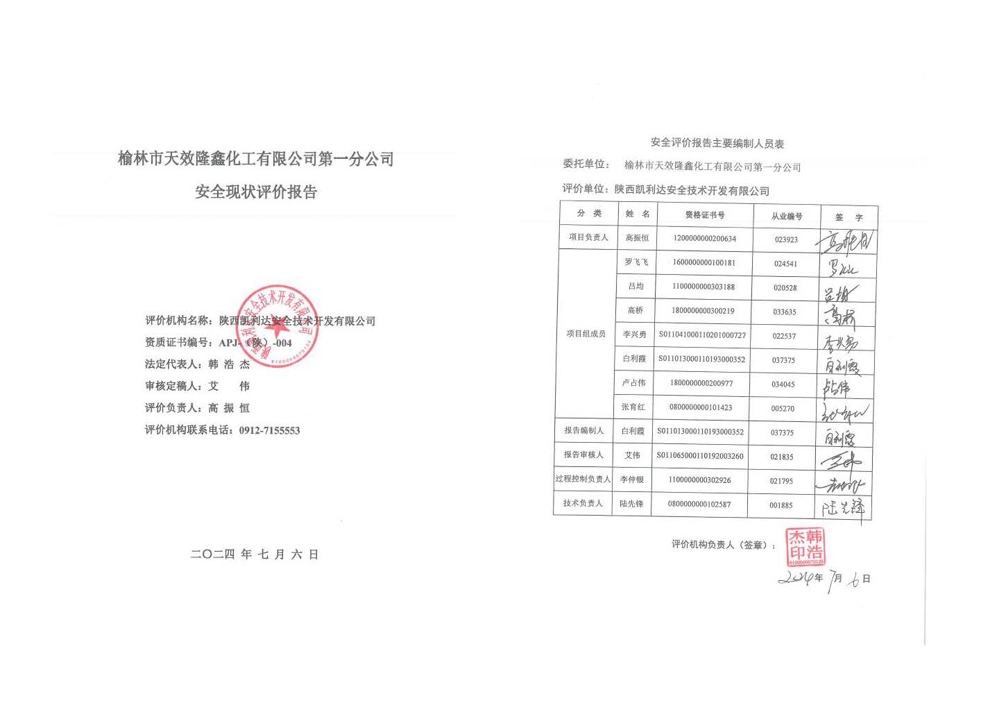 KLDAP[2024]-3.10榆林市天效隆鑫化工有限公司第一分公司安全現(xiàn)狀評價報告