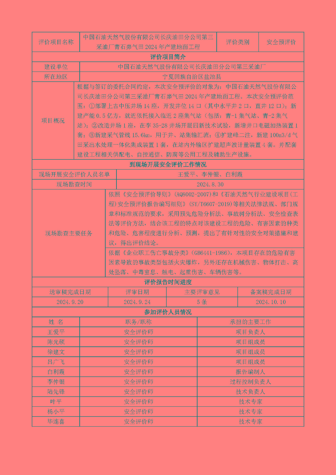 KLDAP[2024]-3.13長(zhǎng)慶油田分公司第三采油廠青石峁氣田2024年產(chǎn)建地面工程安全預(yù)評(píng)價(jià)報(bào)告