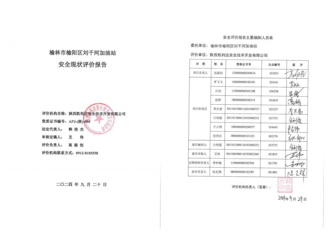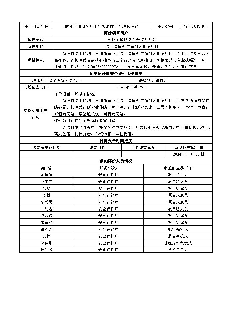 KLDAP[2024]-3.15 榆林市榆陽區(qū)劉千河加油站安全現(xiàn)狀評價報告
