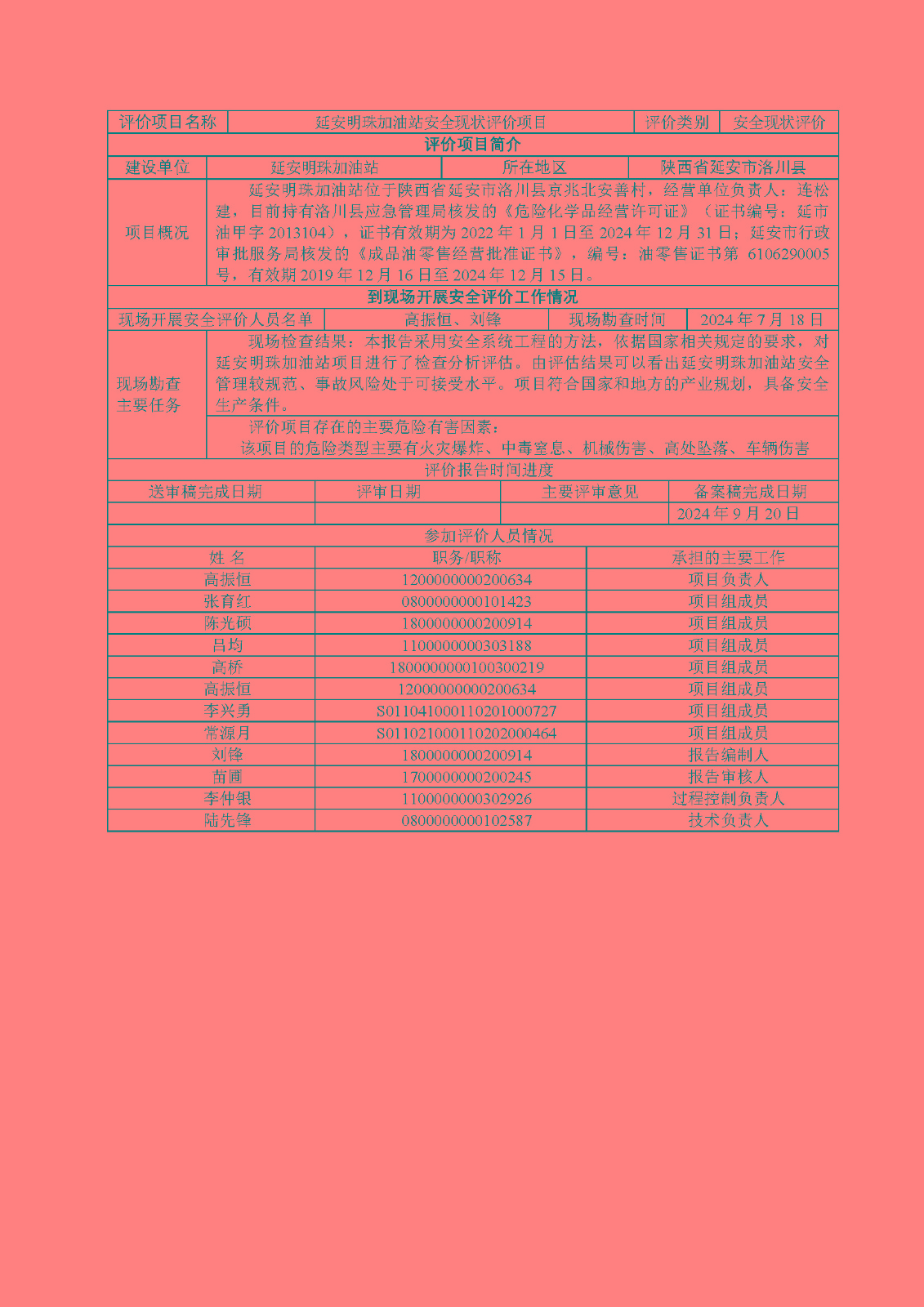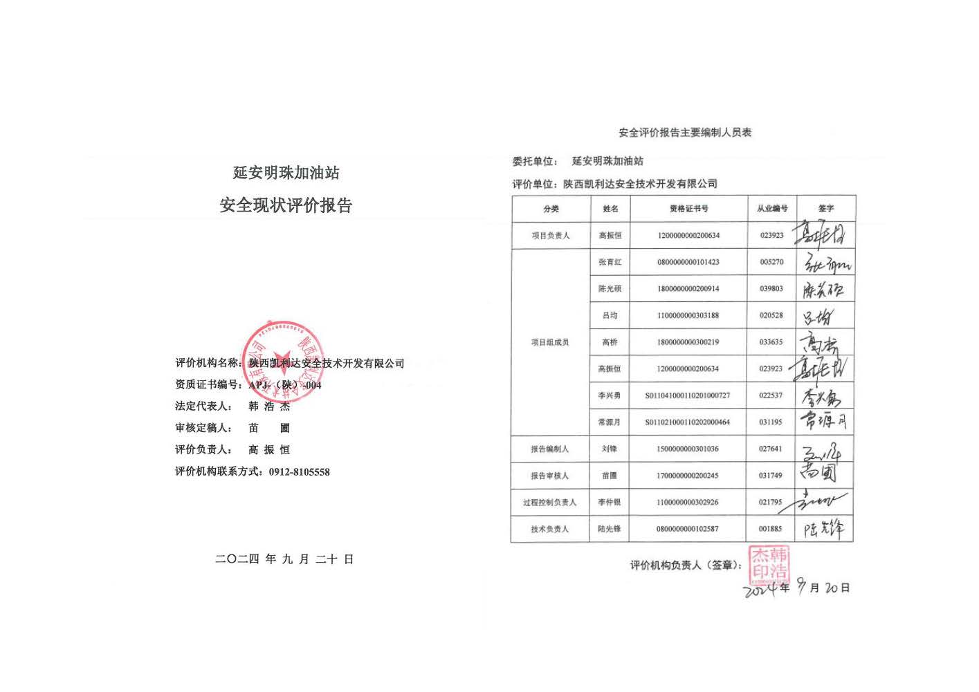 KLDAP[2024]-1.14 延安明珠加油站安全現(xiàn)狀評價
