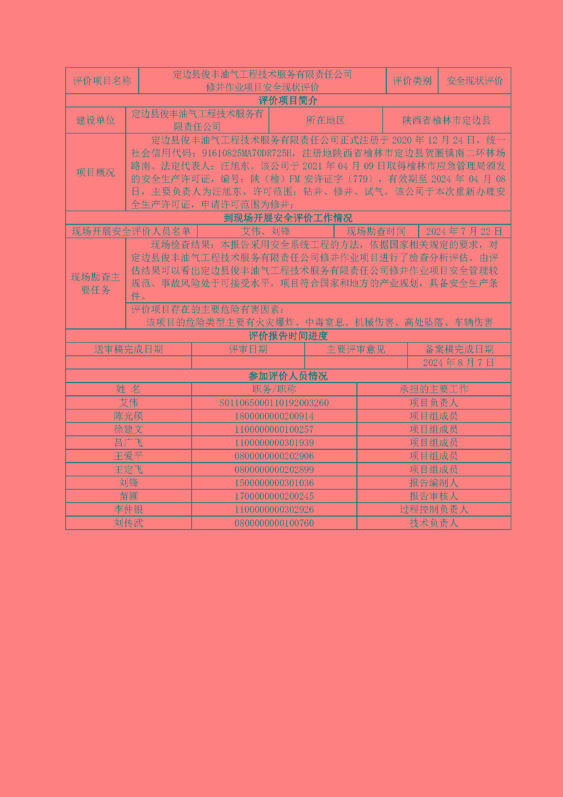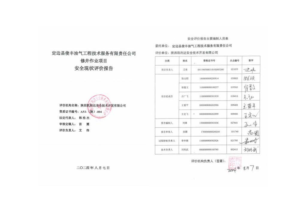 KLDAP[2024]-1.16定邊縣俊豐修井安全現(xiàn)狀評(píng)價(jià)