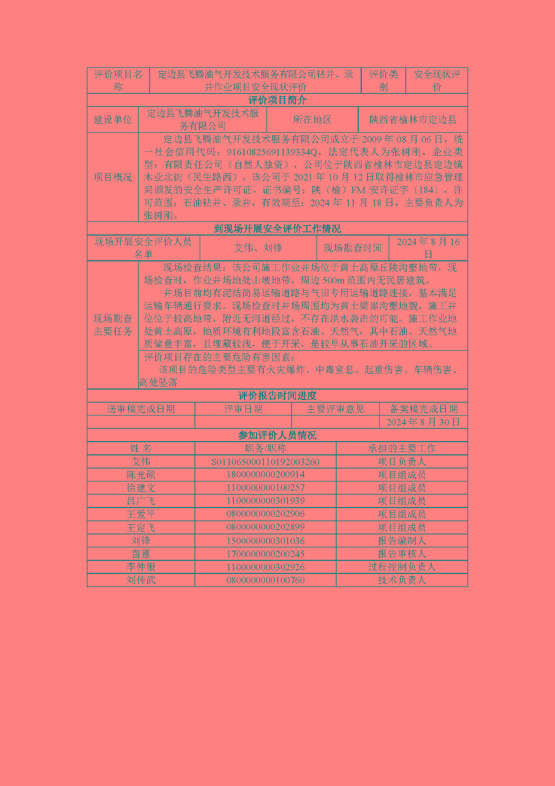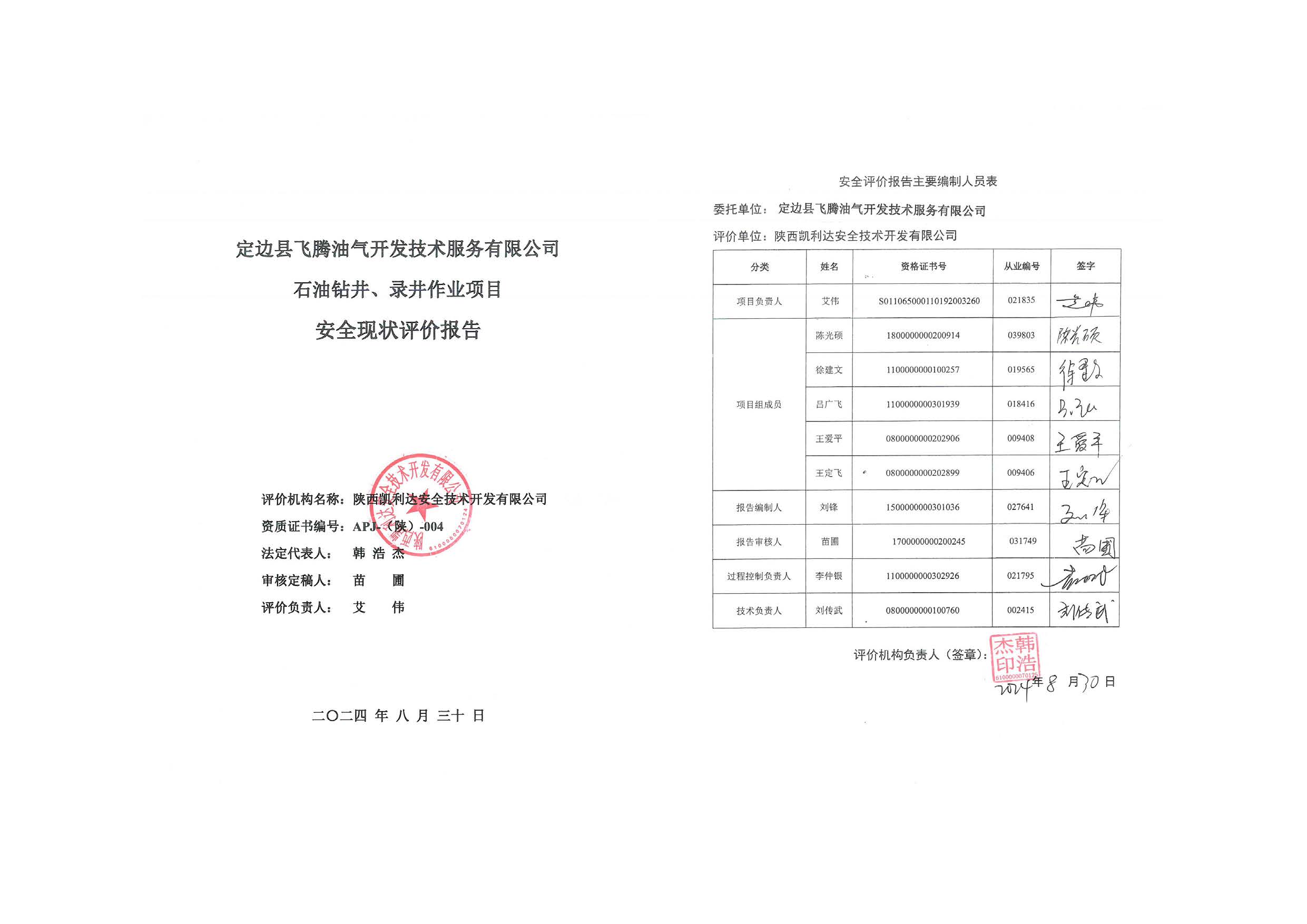 KLDAP[2024]-1.18定邊縣飛騰油氣開發(fā)技術服務有限公司鉆井、錄井作業(yè)項目安全現(xiàn)狀評價報告