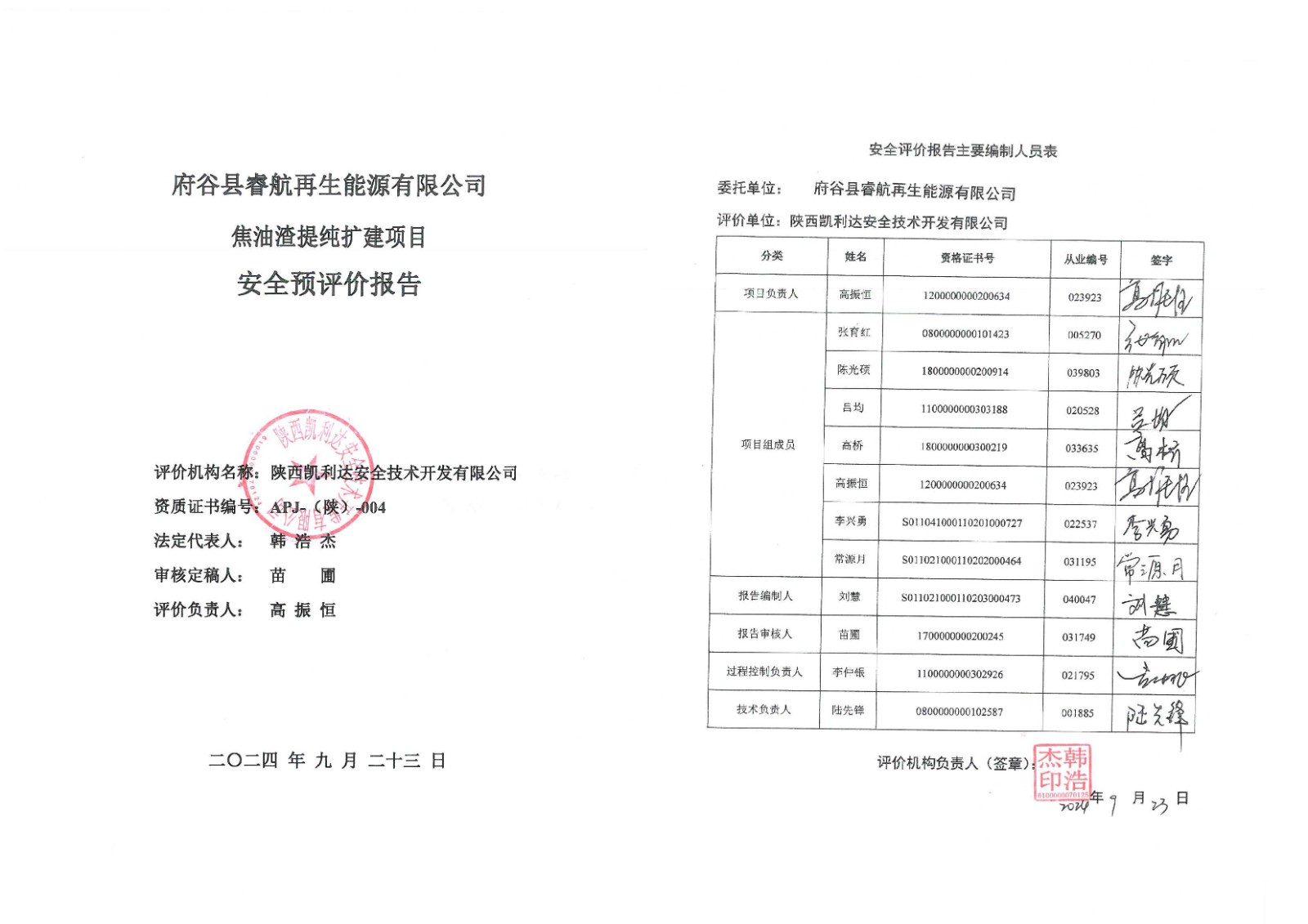 KLDAP[2024]-1.9府谷縣睿航再生能源有限公司焦油渣提純擴(kuò)建項(xiàng)目安全預(yù)評(píng)價(jià)