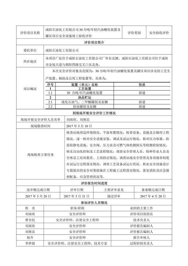 咸陽石油化工有限公司30萬噸年輕汽油醚化裝置及罐區(qū)項目安全設施