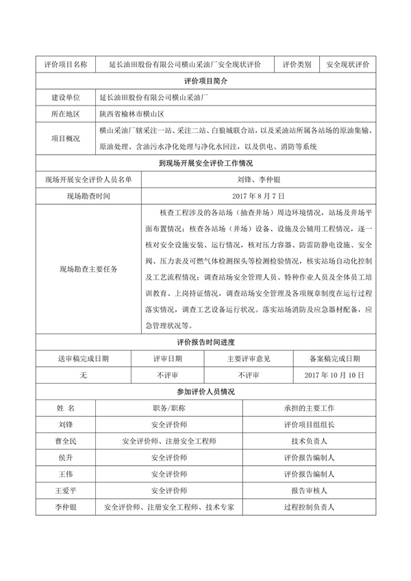 延長(zhǎng)油田股份有限公司橫山采油廠(chǎng)安全現(xiàn)狀評(píng)價(jià)