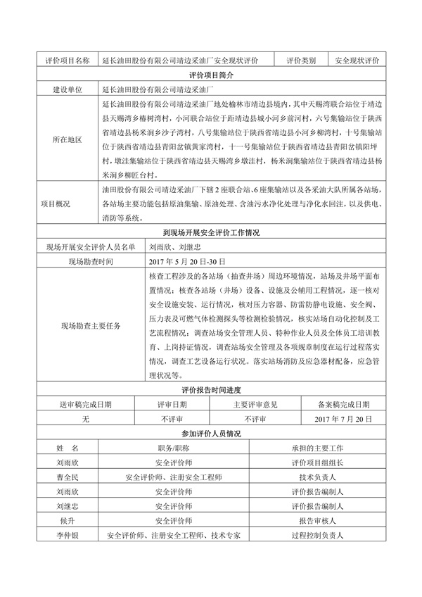 延長油田股份有限公司橫山采油廠安全現(xiàn)狀評價