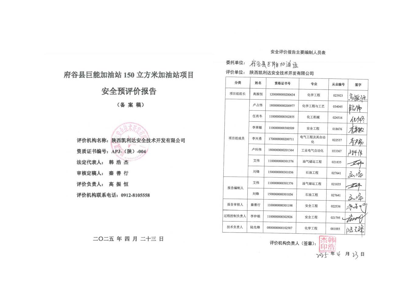 KLDAP[2025]-1.12府谷縣巨能加油站150立方米加油站項(xiàng)目安全預(yù)評(píng)價(jià)