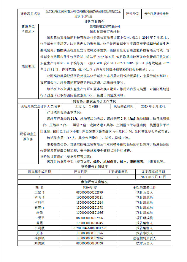 KLDAP-[2025]-3.1延安鈺峰工貿(mào)有限公司雙河鎮(zhèn)沙棚梁輕烴回收處理站安全現(xiàn)狀評(píng)價(jià)