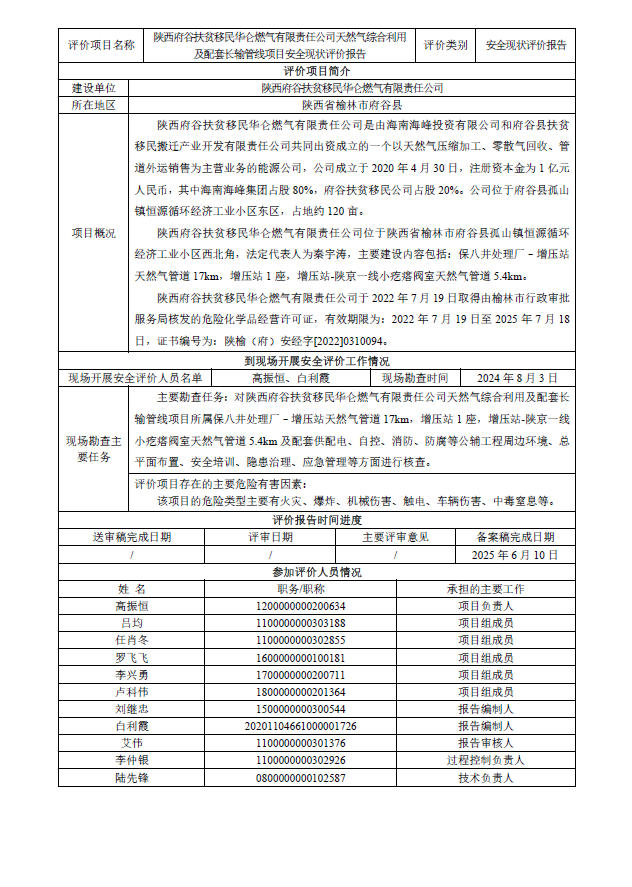 KLDAP-[2025]-3.9陜西府谷扶貧移民華侖燃氣有限責任公司天然氣綜合利用及配套長輸管線項目安全現(xiàn)狀評價