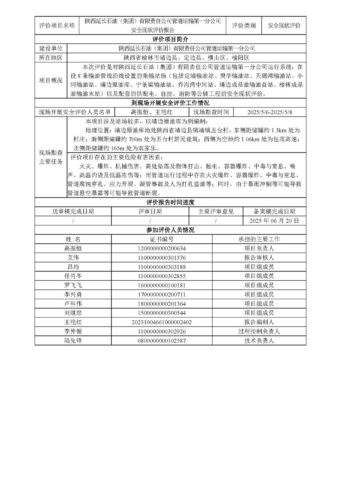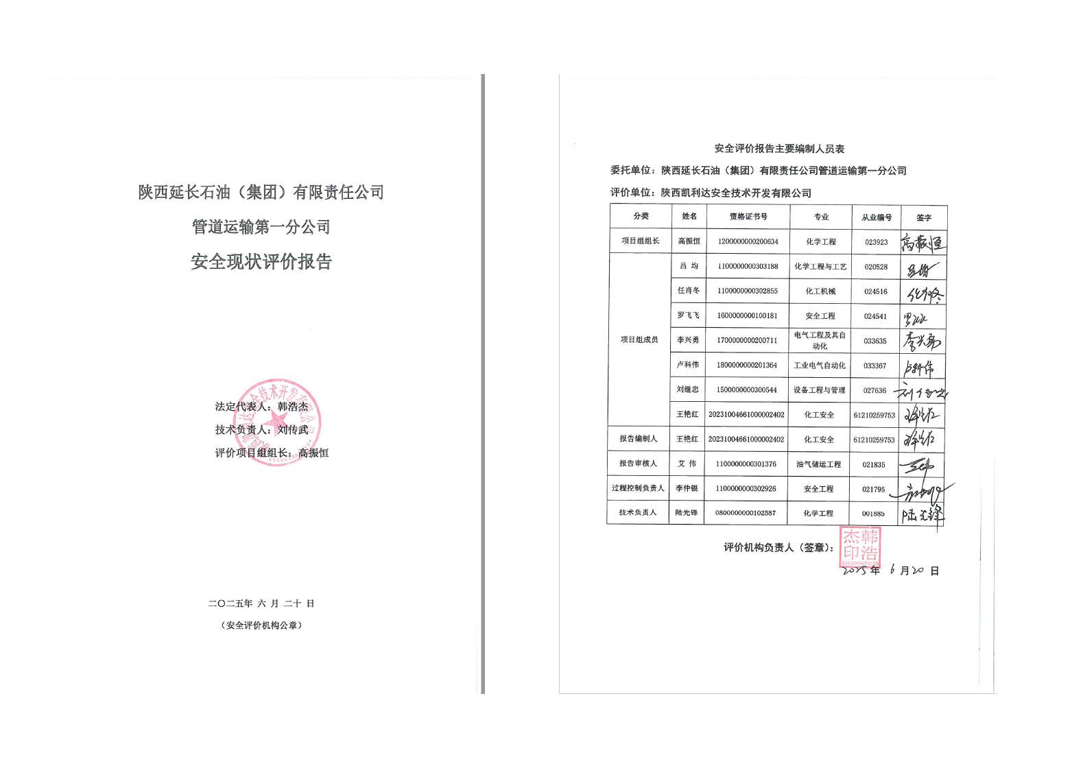 KLDAP[2025]-3.10陜西延長(zhǎng)石油(集團(tuán))有限責(zé)任公司管道運(yùn)輸?shù)谝环止景踩F(xiàn)狀評(píng)價(jià)報(bào)告