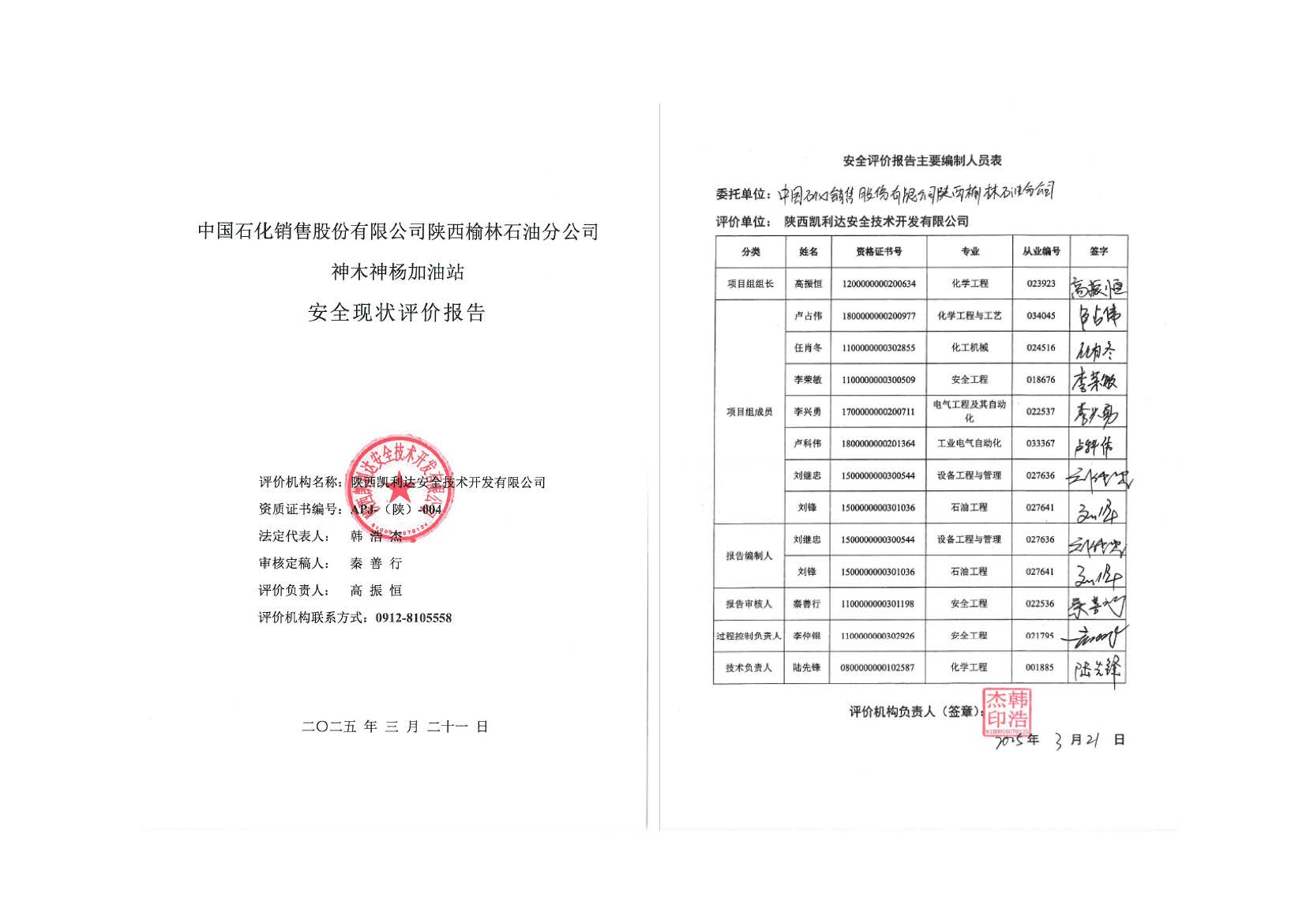 KLDAP[2023]-4.16中國石化銷售股份有限公司陜西榆林石油分公司神木神楊加油站安全現(xiàn)狀評價(jià)