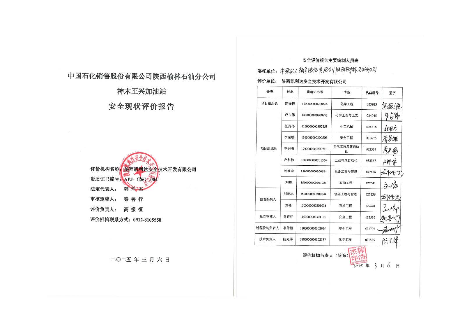 KLDAP[2023]-4.20中國石化銷售股份有限公司陜西榆林石油分公司神木正興加油站安全現(xiàn)狀評價