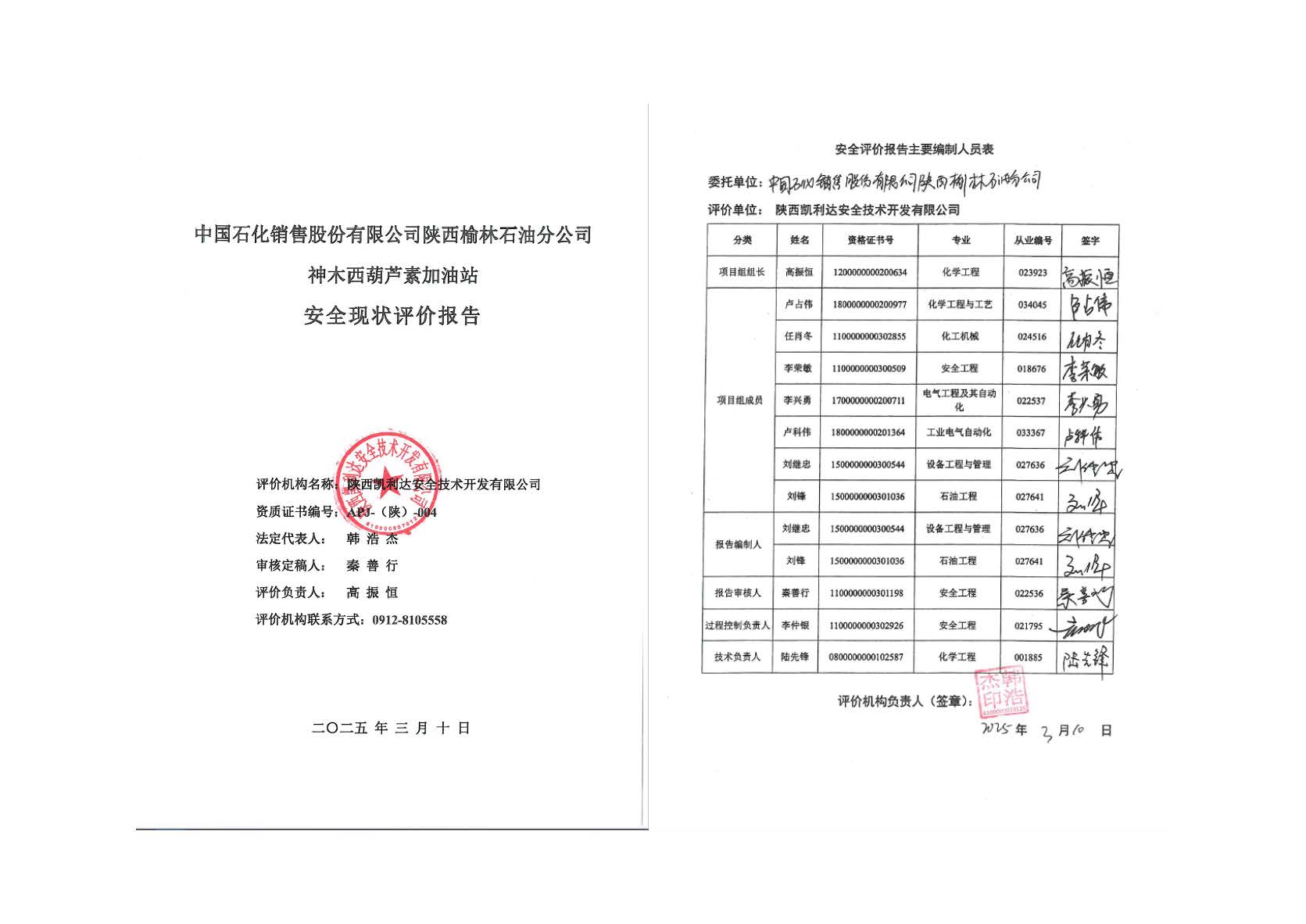 KLDAP[2023]-4.21中國石化銷售股份有限公司陜西榆林石油分公司神木西葫蘆素加油站安全現(xiàn)狀評價