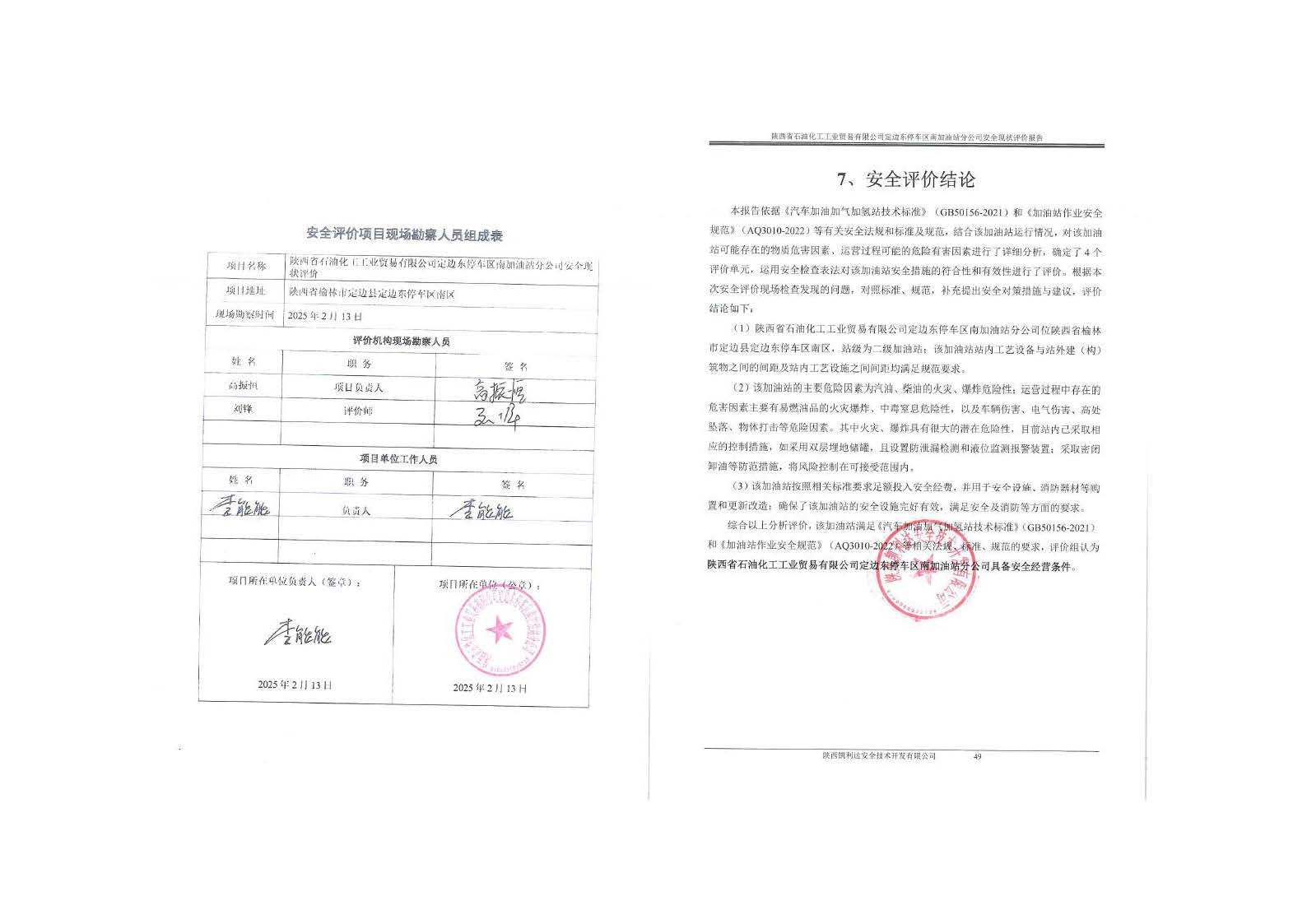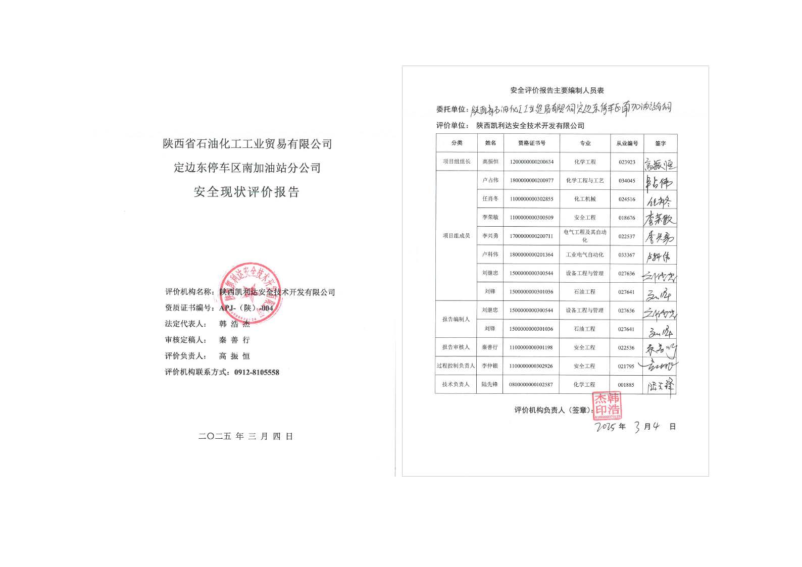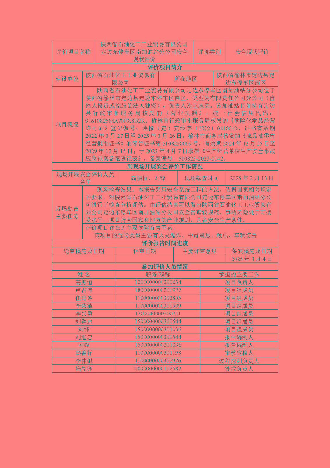 KLDAP[2025]-1.4陜西省石油化工工業(yè)貿(mào)易有限公司定邊東停車區(qū)南加油站分公司安全現(xiàn)狀評價