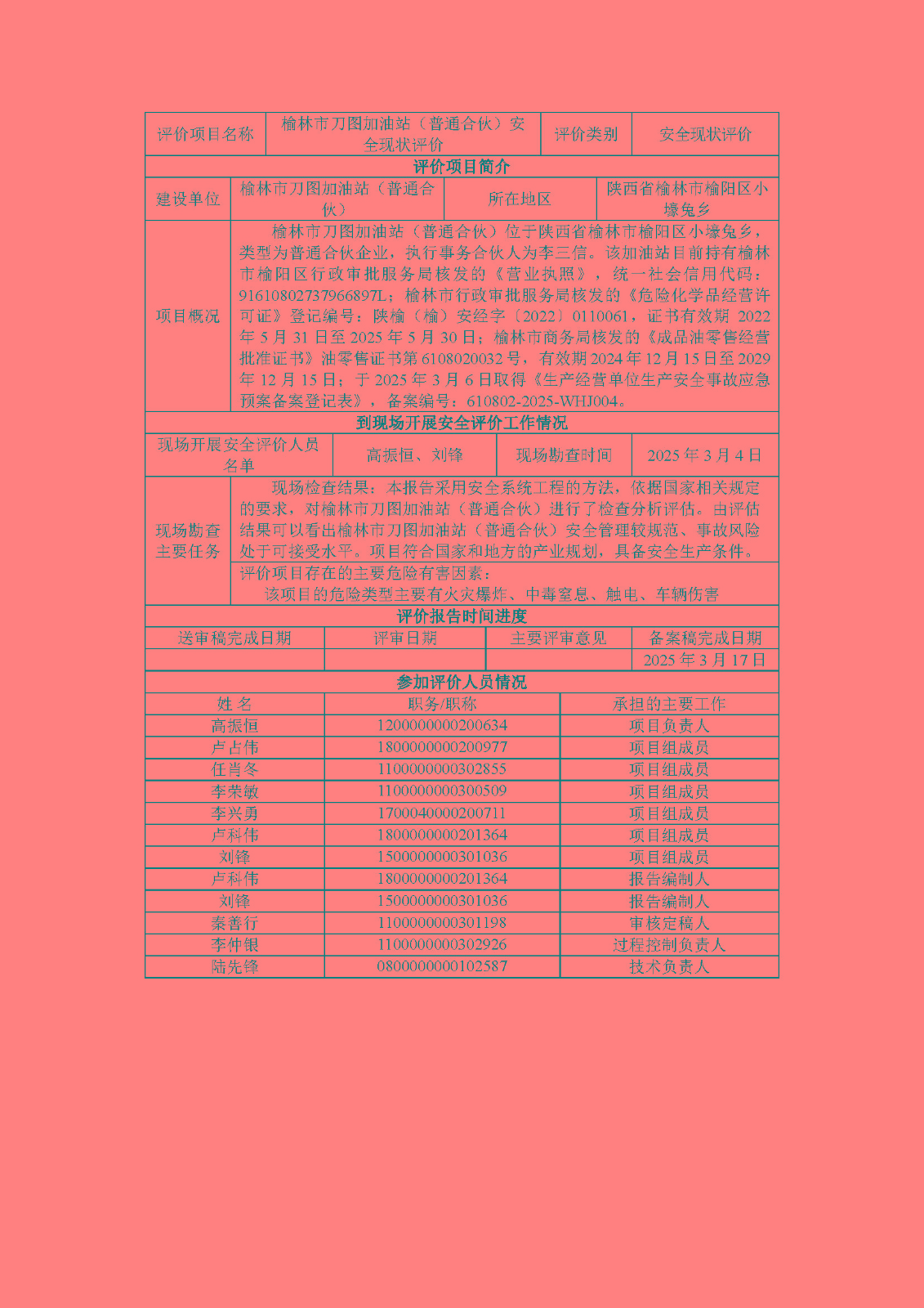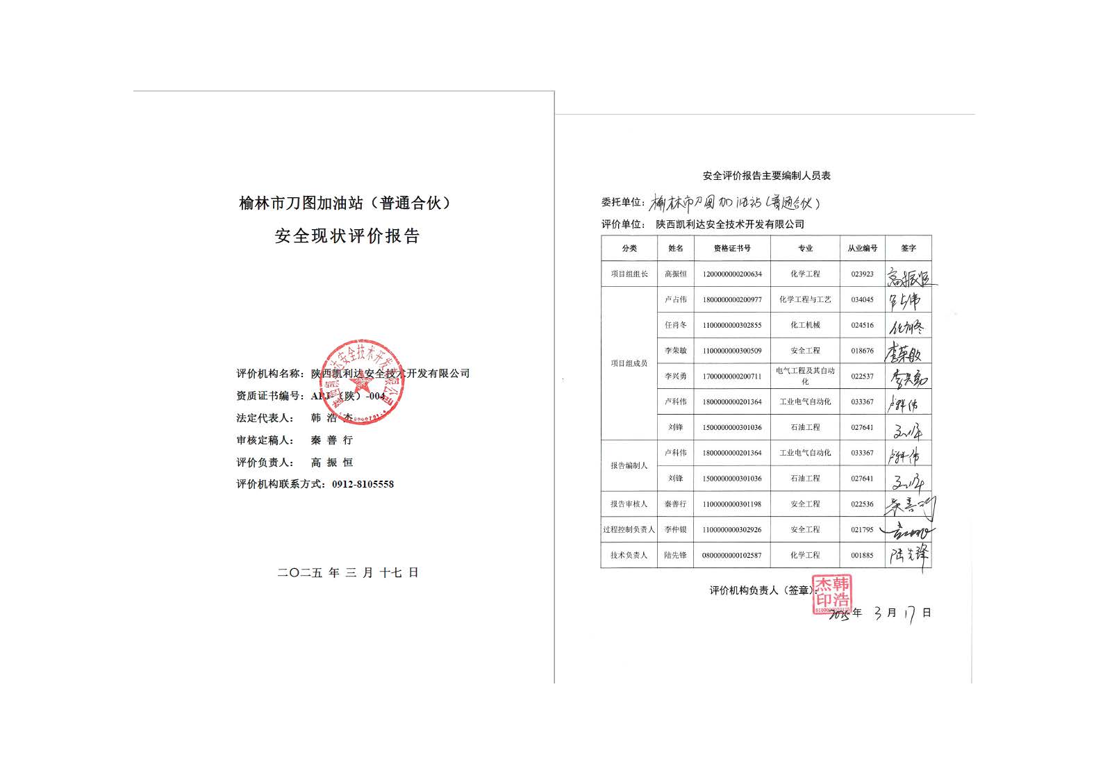 KLDAP[2025]-1.10榆林市刀圖加油站(普通合伙)安全現(xiàn)狀評價