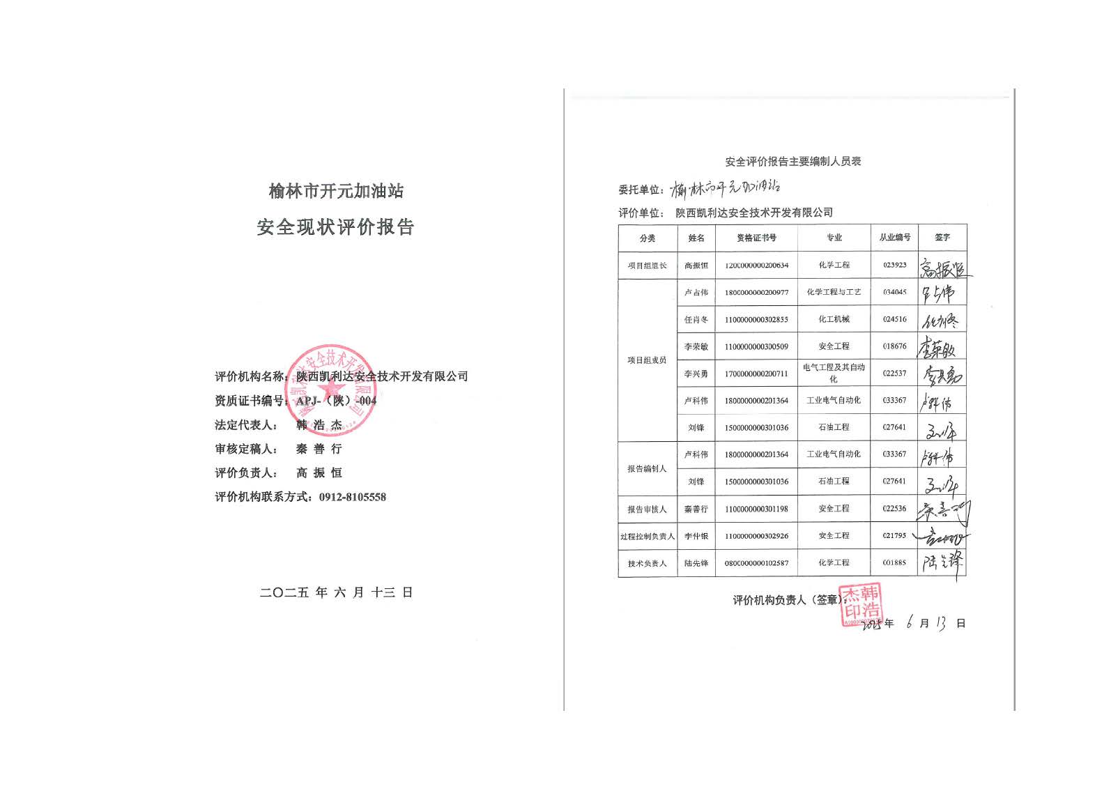 KLDAP[2025]-1.11榆林市開(kāi)元加油站安全現(xiàn)狀評(píng)價(jià)