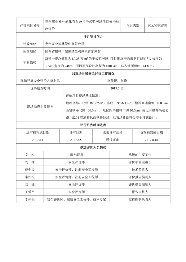 兗州煤業(yè)榆林能化有限公司干式貯灰場項(xiàng)目安全驗(yàn)收評(píng)價(jià)11