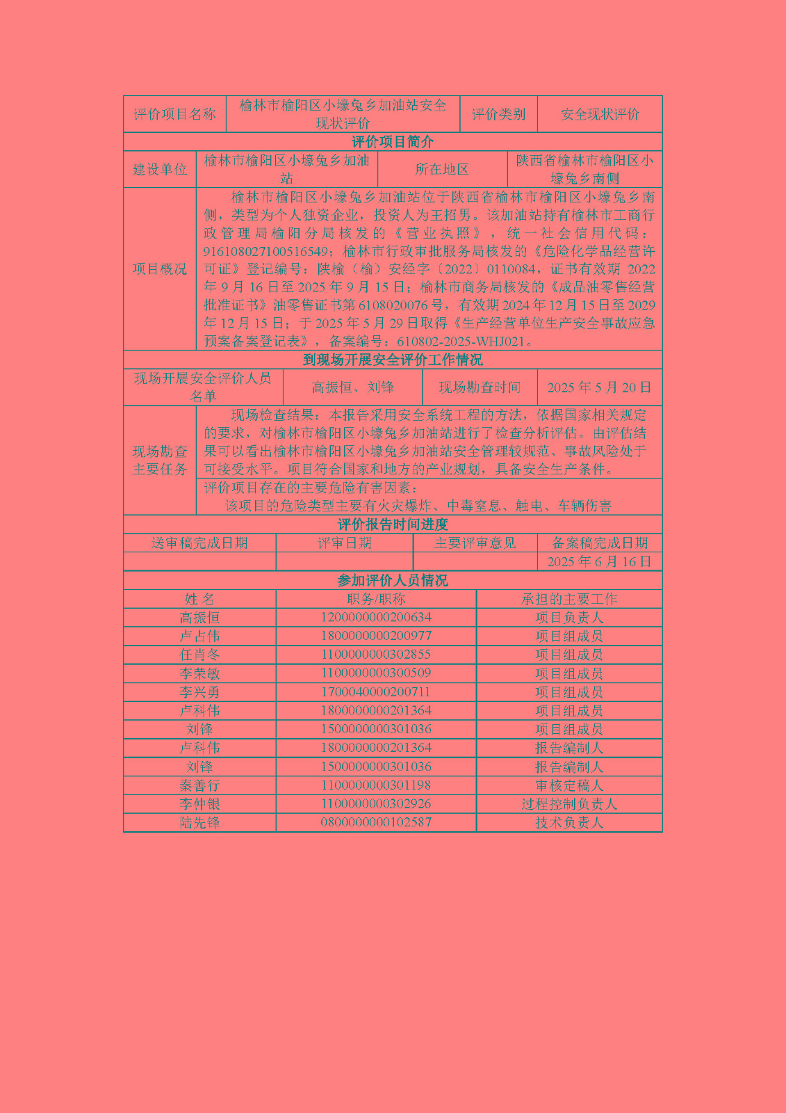 KLDAP[2025]-1.27榆林市榆陽區(qū)小壕兔鄉(xiāng)加油站安全現(xiàn)狀評(píng)價(jià)