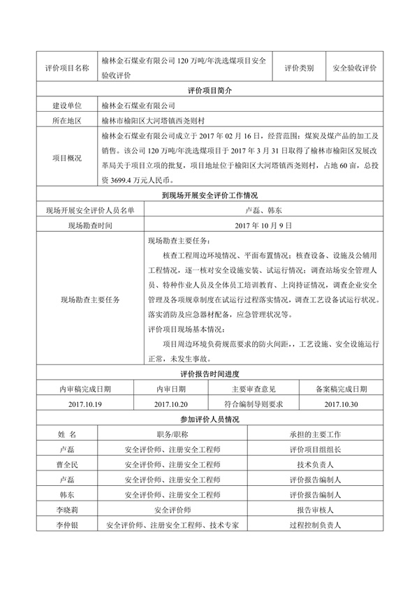 榆林金石煤業(yè)有限公司120萬噸年洗選煤項目安全驗收評價14