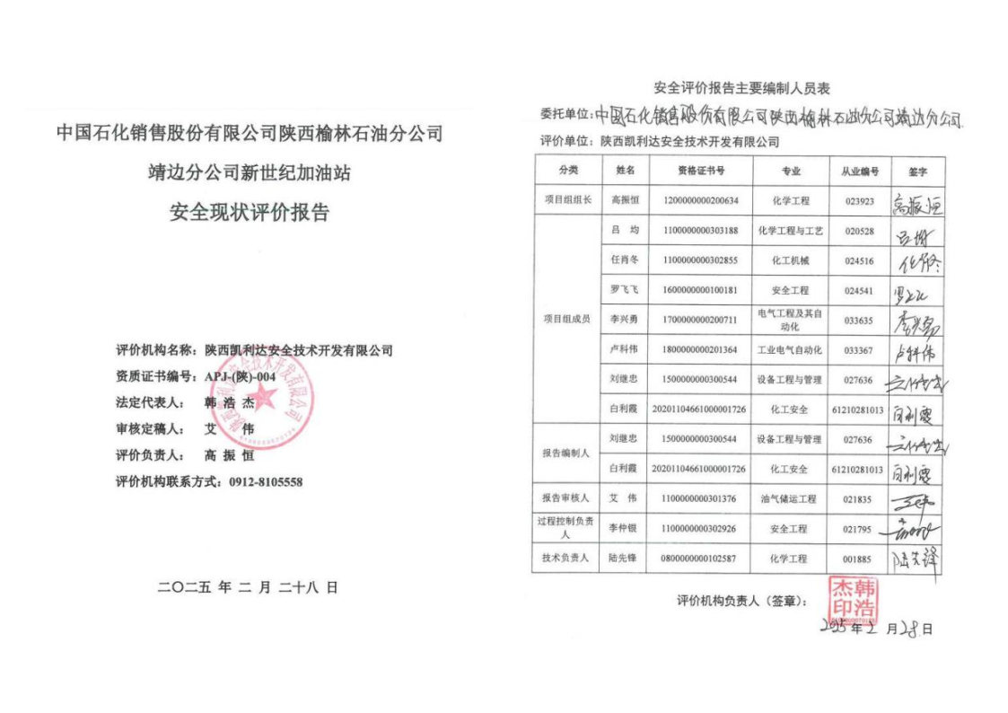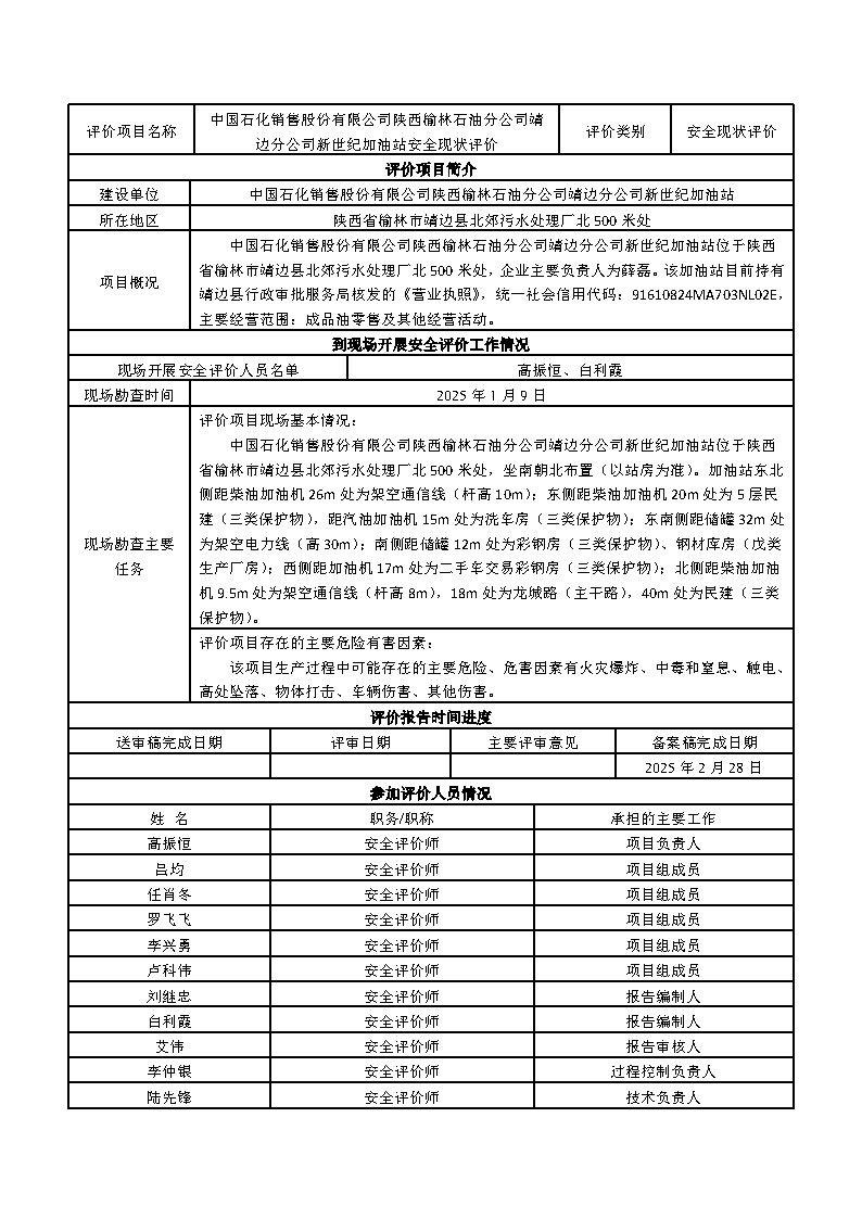 中國石化銷售股份有限公司陜西榆林石油分公司靖邊分公司新世紀(jì)加油站安全現(xiàn)狀評價報告