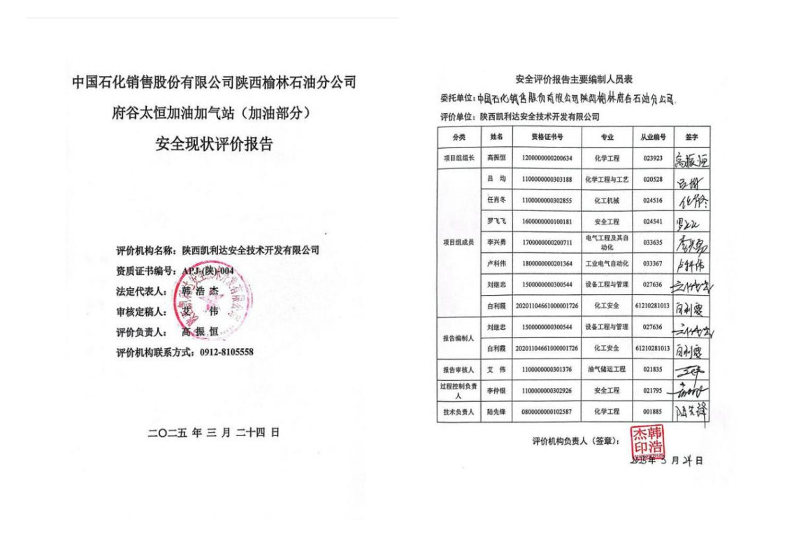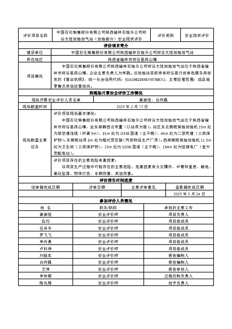 中國石化銷售股份有限公司陜西榆林石油分公司府谷太恒加油加氣站(加油部分)安全現(xiàn)狀評(píng)價(jià)報(bào)告