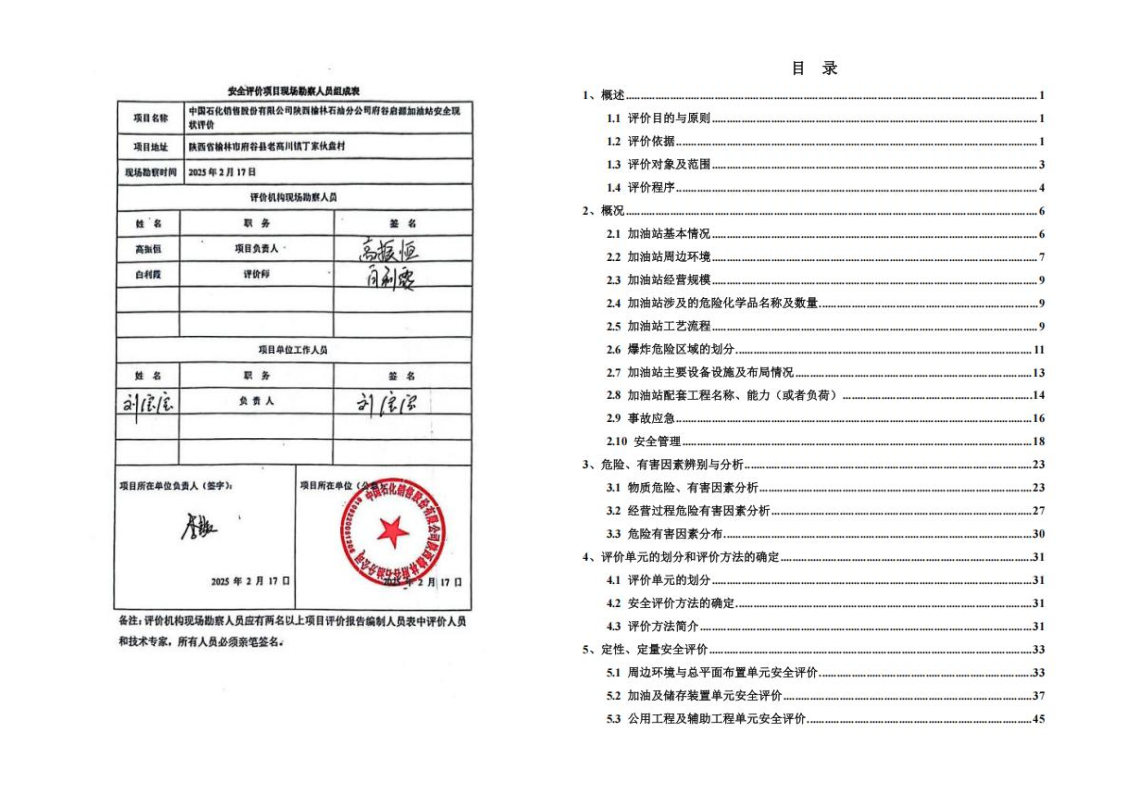 中國石化銷售股份有限公司陜西榆林石油分公司府谷太恒加油加氣站(加油部分)安全現(xiàn)狀評(píng)價(jià)報(bào)告