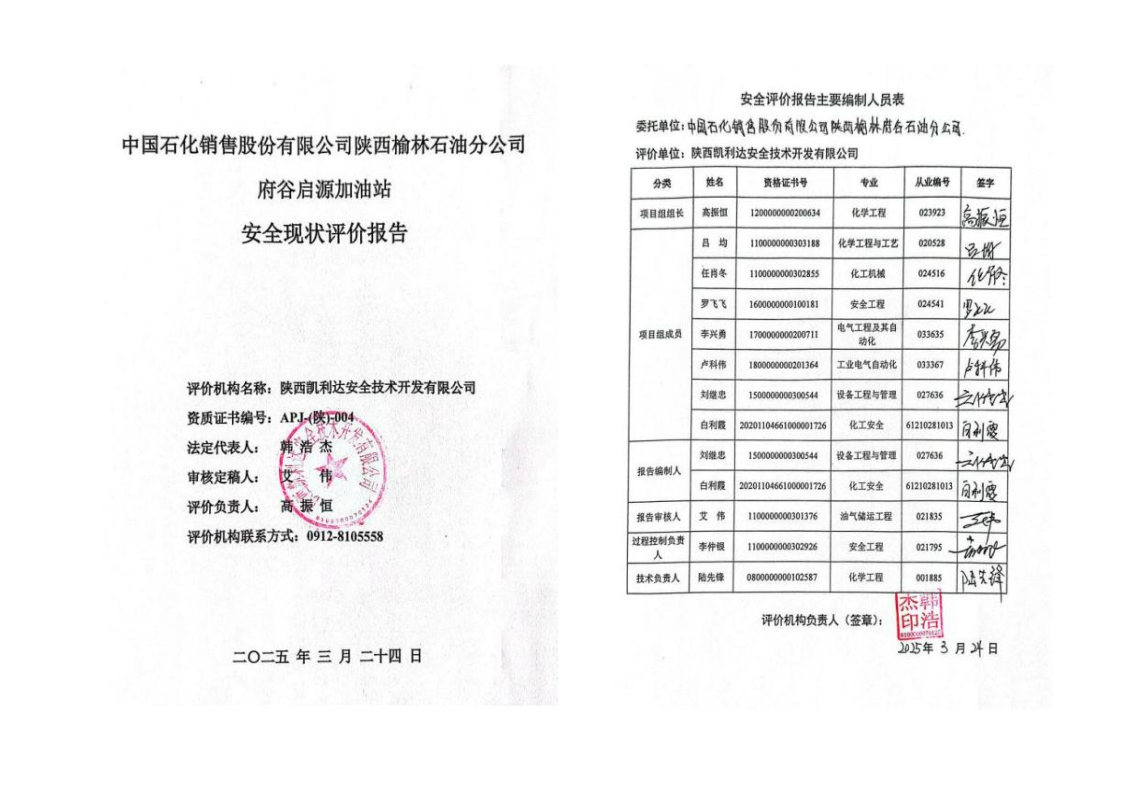 中國石化銷售股份有限公司陜西榆林石油分公司府谷啟源加油站安全現(xiàn)狀評(píng)價(jià)報(bào)告