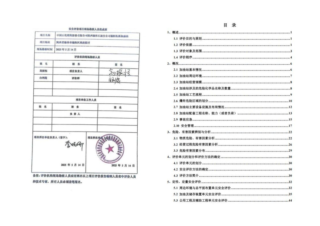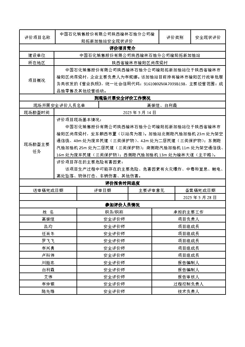 中國石化銷售股份有限公司陜西榆林石油分公司榆陽拓新加油站安全現(xiàn)狀評價(jià)報(bào)告