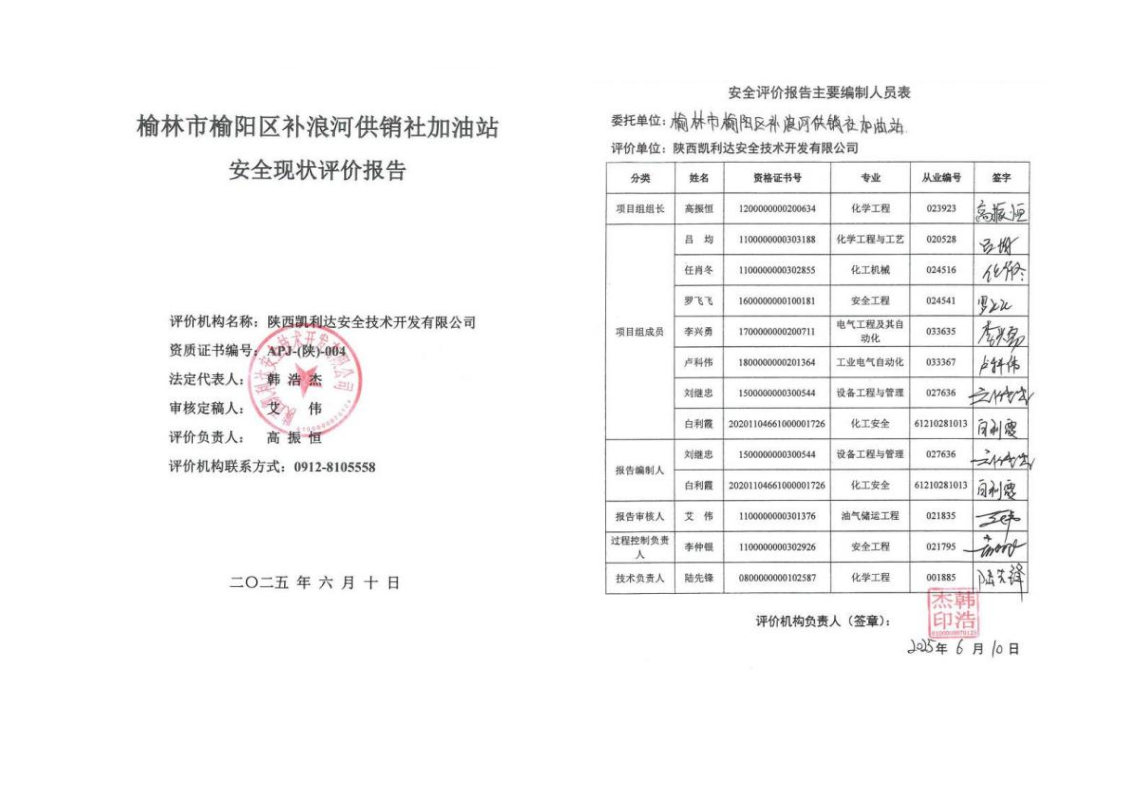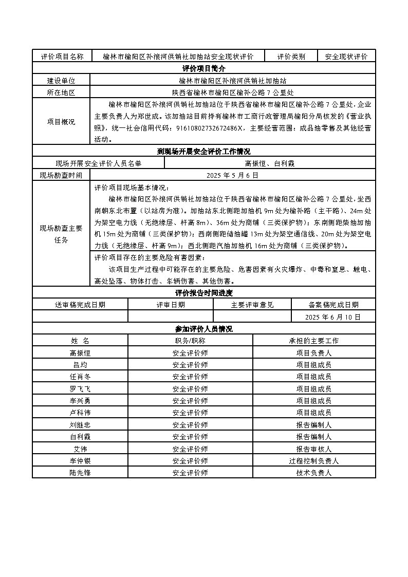 榆林市榆陽區(qū)補浪河供銷社加油站安全現(xiàn)狀評價報告
