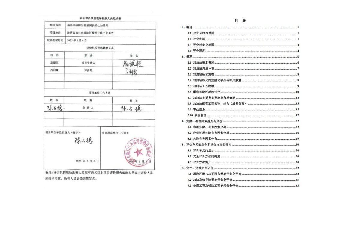 榆林沙河加油站有限公司安全現(xiàn)狀評價報告