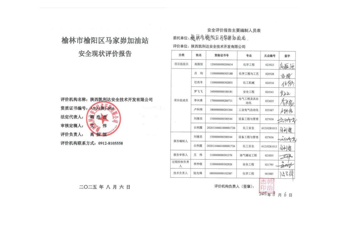 KLDAP[2025]-2.16榆林市榆陽(yáng)區(qū)廣濟(jì)北村鑫發(fā)加油站安全現(xiàn)狀評(píng)價(jià)