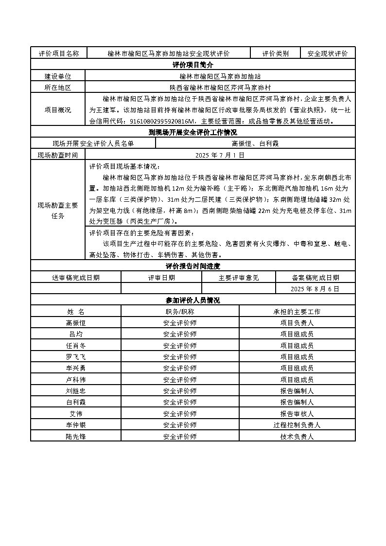 榆林市榆陽(yáng)區(qū)馬家峁加油站安全現(xiàn)狀評(píng)價(jià)報(bào)告