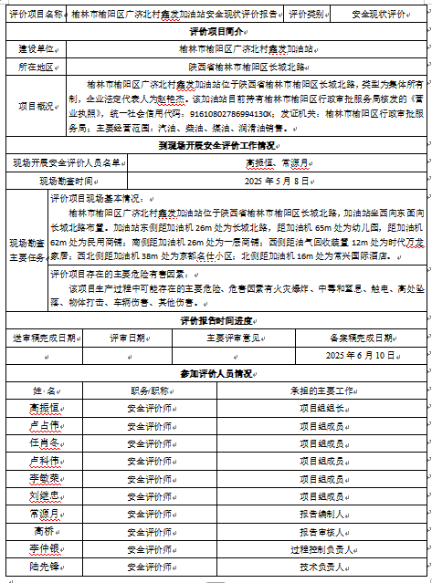 KLDAP[2025]-2.16榆林市榆陽區(qū)廣濟(jì)北村鑫發(fā)加油站安全現(xiàn)狀評價
