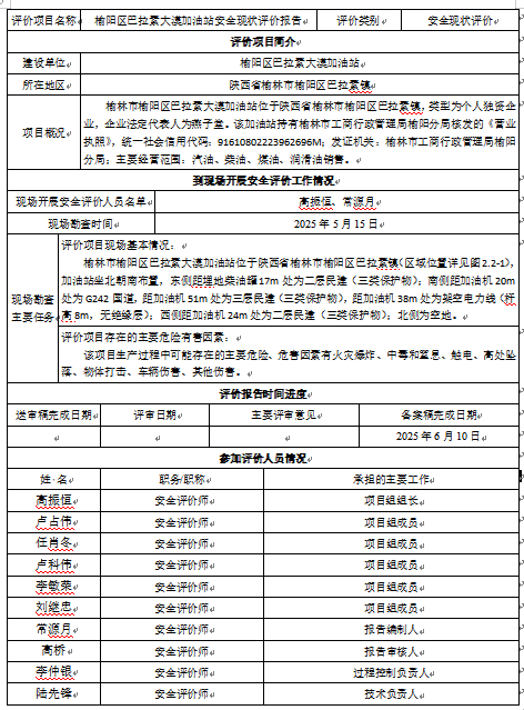 KLDAP[2025]-2.17榆陽區(qū)巴拉素大漠加油站安全現(xiàn)狀評價
