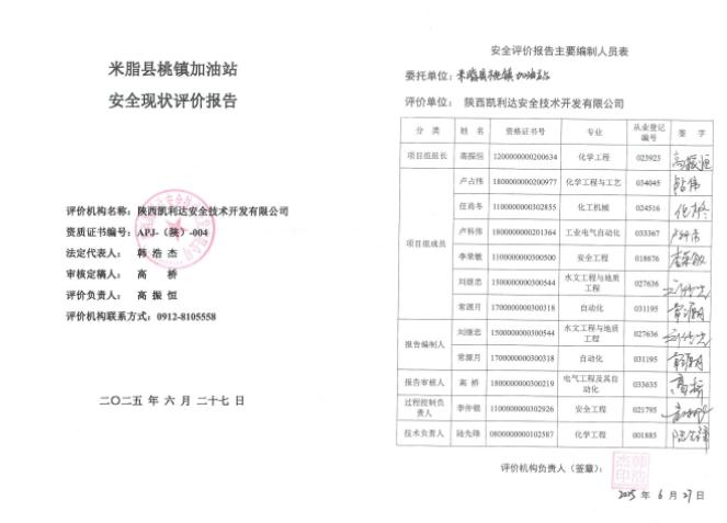 KLDAP[2025]-2.19米脂縣桃鎮(zhèn)加油站安全現(xiàn)狀評價